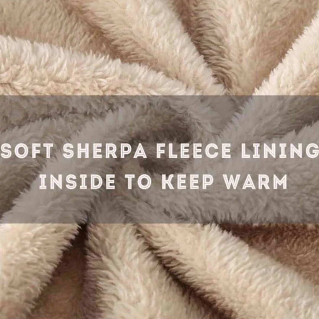 The outer shell is made from 100% cotton flannel, while the interior features 100% polyester Sherpa fleece — a durable, soft, and warm combination that feels premium without being heavy.
