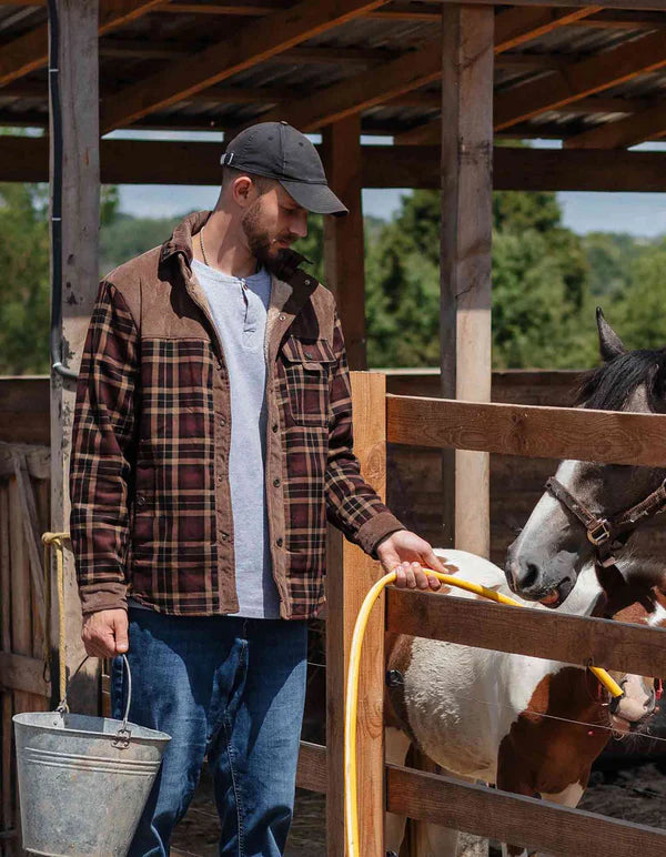 Step confidently into the cold with the perfect blend of warmth, comfort, and timeless style. Our Men’s Plaid Sherpa Lined Flannel Jacket features a thick cotton flannel shell and a luxurious sherpa fleece lining, delivering the ideal balance of rugged durability and cozy comfort.
